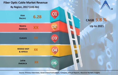 通訊商場研究機構Absolute Markets Insights日前發布陳述稱,到2021年全球光纖電纜商場規模將到達138.7億美元,期間年復合增率約為5.8%。