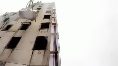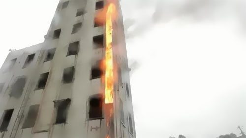 在起火只是兩分鐘后,電纜就燒到了上面一層,而火勢好像也一起在向下延伸。